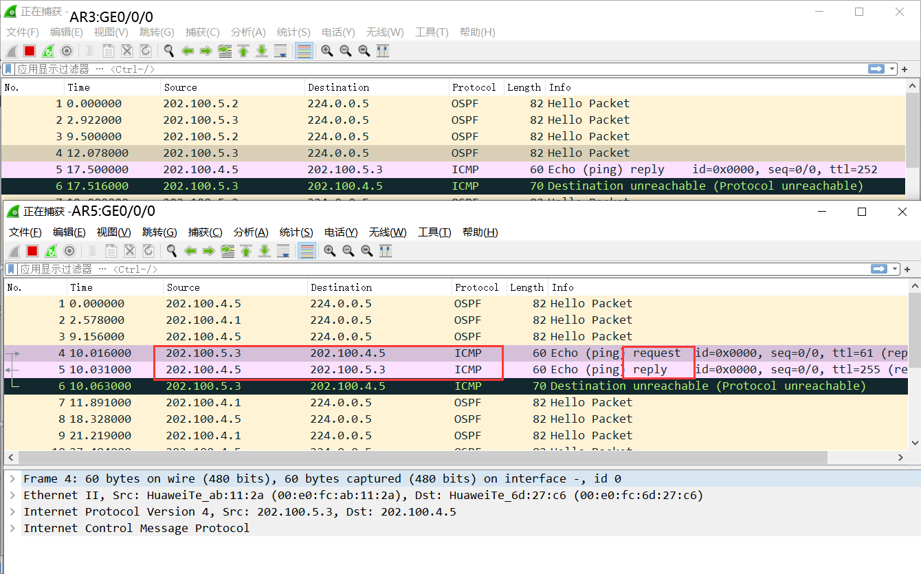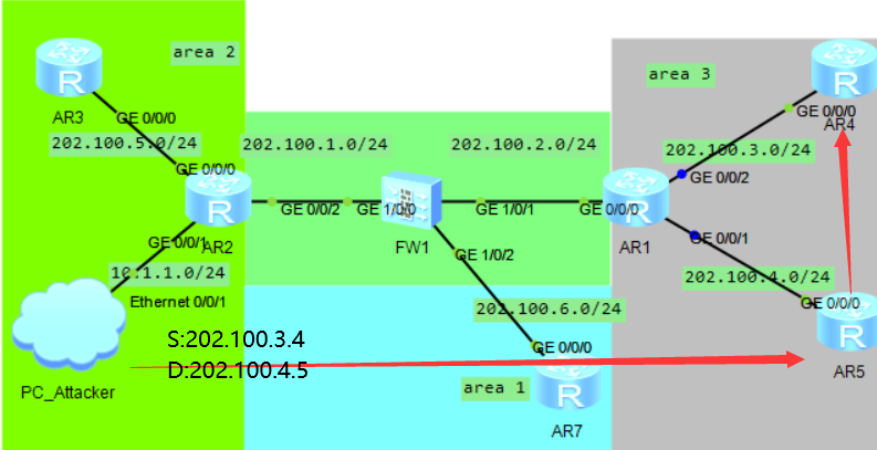 PC修改源为202.100.3.4给AR5,AR5收到后则发送回应报文给R4。这样同时影响两台设备。