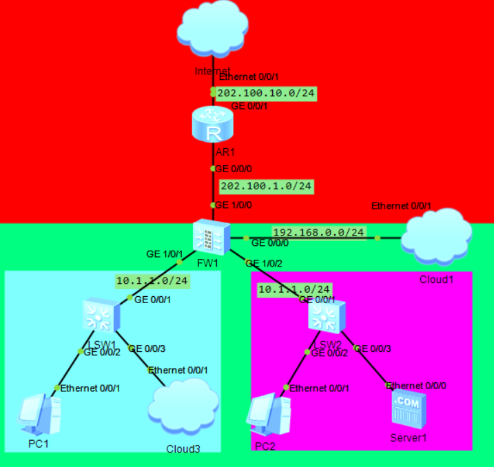 ①配置Cloud3做NAPT,配置Server1为NAT-Server,使Cloud3可以通过2.2.2.2访问Server1。
