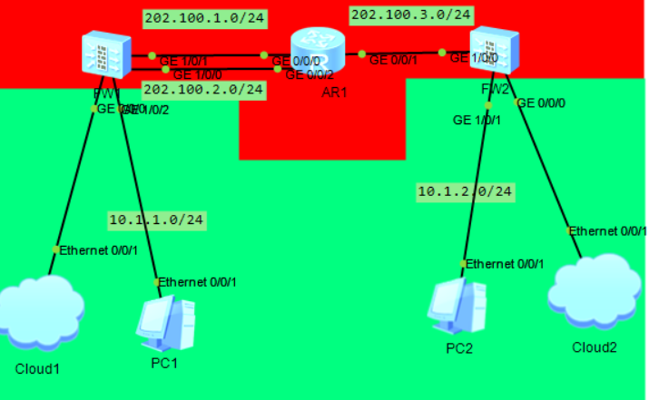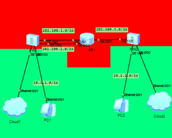 [FW1]ip route-static 0.0.0.0 0 202.100.1.254 [FW2]ip route-static 0.0.0.0 0 202.100.1.254 [FW3]ip route-static 0.0.0.0 0 202.100.2.254