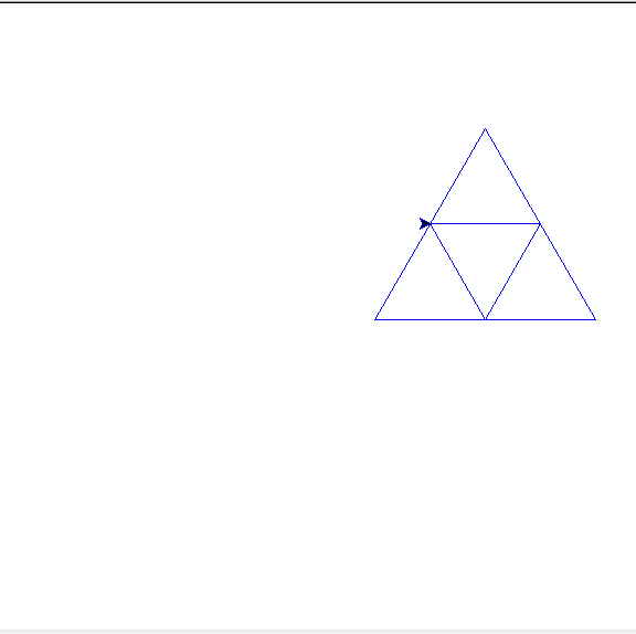 import turtle as t t.pencolor("blue") #笔触为蓝色 #绘制外部大三角形 t.fd(200) t.seth(120) t.fd(200) t.seth(-120) t.fd(200) #绘制内部小三角形 t.seth(0) t.fd(100) t.seth(60) t.fd(100) t.seth(180) t.fd(100) t.seth(-60) t.fd(100) t.seth(120) t.fd(100) t.seth(0) t.done()