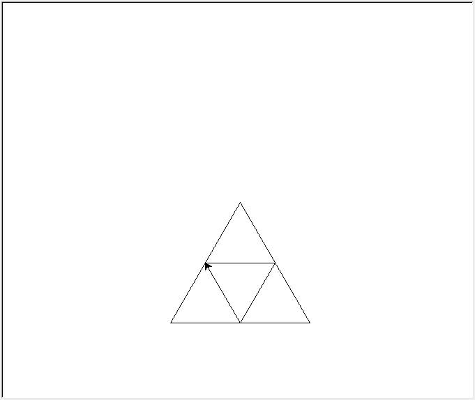 import turtle turtle.right(60) turtle.forward(200) turtle.right(120) turtle.forward(200) turtle.right(120) turtle.forward(200) turtle.penup() turtle.forward(-100) turtle.pendown() turtle.right(60) turtle.forward(100) turtle.right(120) turtle.forward(100) turtle.right(120) turtle.forward(100) turtle.done()