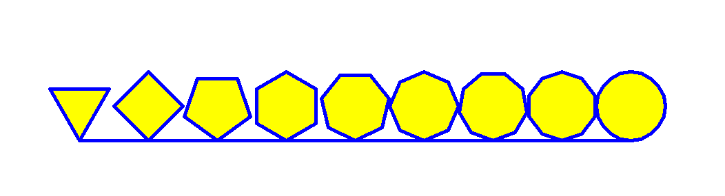 import turtle number = int(input()) turtle.screensize(600,500,'white') turtle.pensize(3) turtle.pencolor('blue') turtle.fillcolor('yellow') turtle.begin_fill() turtle.forward(-300) if num>=3 and num<10: for i in range(3,number): turtle.circle(50, steps=i) turtle.forward(100) turtle.circle(50) turtle.end_fill() turtle.hideturtle() turtle.done()