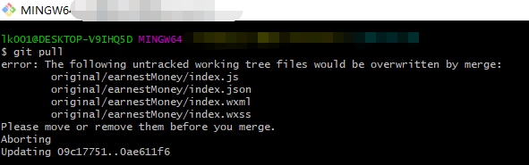 错误:一些没有提交到暂存区的文件将被远程的仓库覆盖,请移动或移除这些文件
