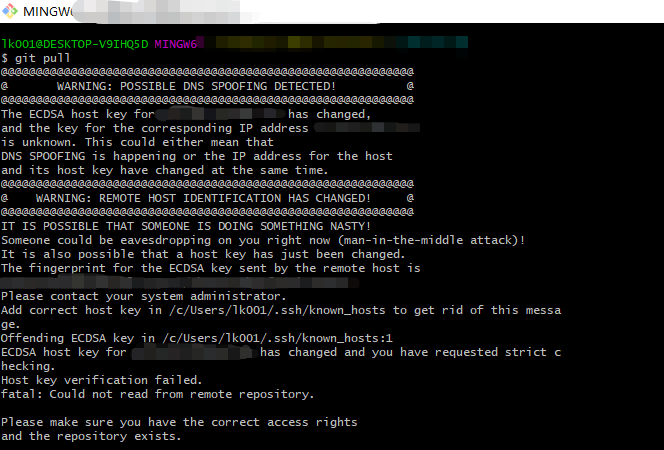 删除该文件后拉取代码就ok了。后面又遇到这种情况,删除该文件后拉取代码会让输入密码,但是输入后显示拒绝访问。百度到的都是修改控制面板——用户账户——管理Windows凭据——普通凭据,选择对应地址,修改用户名和密码。试过后发现没用,后面发现是拉取代码地址错了。。。