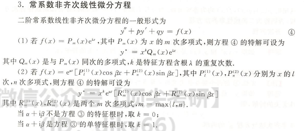 对于高阶方程,在本课程即二阶方程,只有三种情况,一种是常系数的,另外两种是非常系数的。本课程只讨论常系数齐次线性微分方程,若有二阶非常系数微分方程则考虑是不显含x或不显含y的微分方程,则求解方法根据方程类型选择。