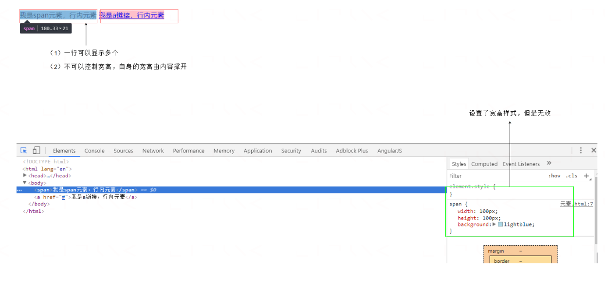 (1)相邻行内元素在一行上,一行可以显示多个。