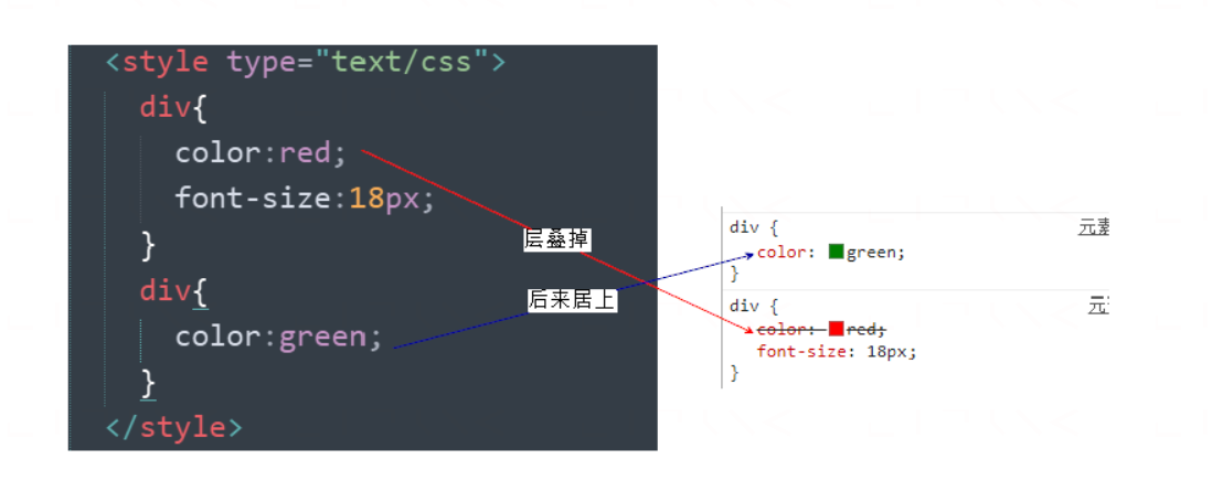 是浏览器处理冲突的一个能力,如果一个属性通过两个相同选择器设置到同一个元素上,那么这个时候一个属性就会将另一个属性层叠掉