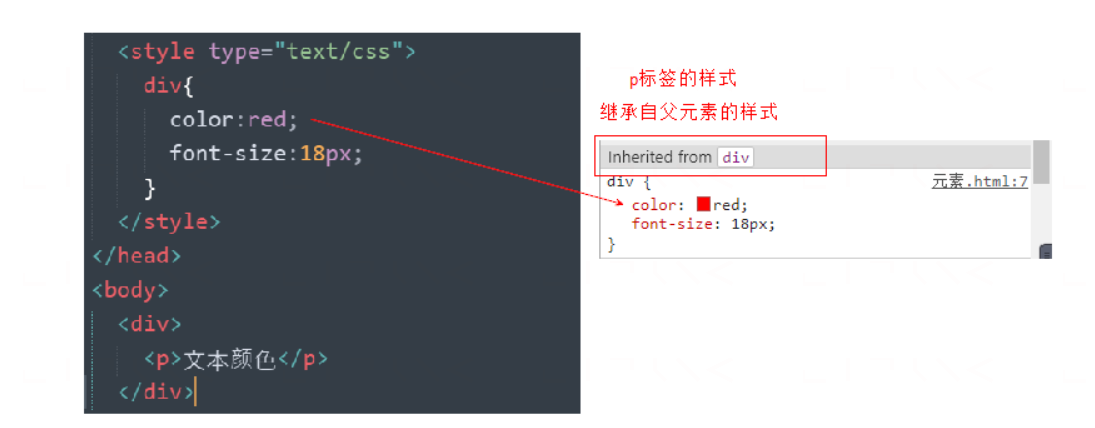 子元素可以继承父元素的样式(text-,font-,line-这些元素开头的可以继承,以及color属性)