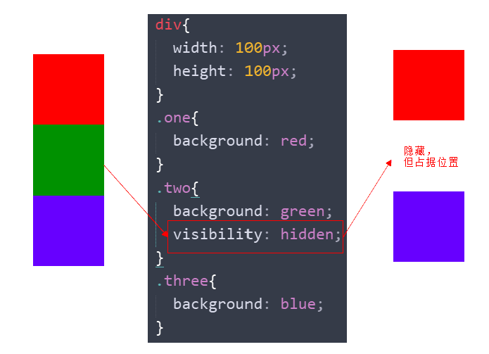 特点: 隐藏之后,不再保留位置。
