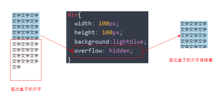 隐藏超出内容,隐藏掉, 不允许内容超过父盒子。