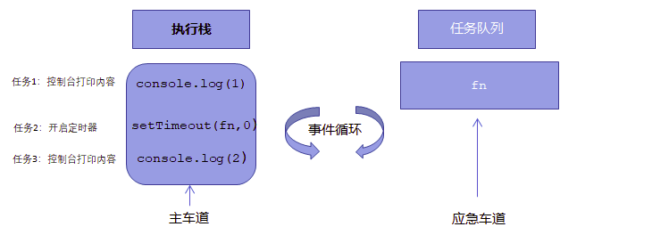 不进入主线程、而进入”任务队列”的任务,当主线程中的任务运行完了,才会从”任务队列”取出异步任务放入主线程执行。