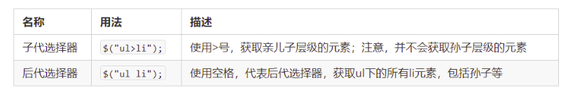 层级选择器最常用的两个分别为:后代选择器和子代选择器。