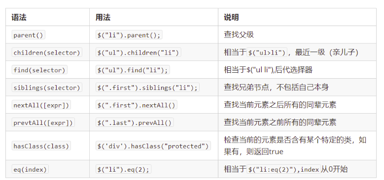 <body> <div>我是div</div> <div class="nav">我是nav div</div> <p>我是p</p> <ul> <li>我是ul 的</li> <li>我是ul 的</li> <li>我是ul 的</li> </ul> <script> $(function() { console.log($(".nav")); console.log($("ul li")); }) </script> </body>