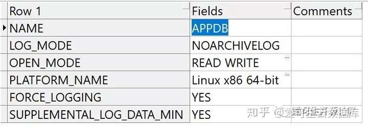 SQL> SELECT NAME,LOG_MODE,OPEN_MODE,PLATFORM_NAME,FORCE_LOGGING,SUPPLEMENTAL_LOG_DATA_MIN FROM V$DATABASE;