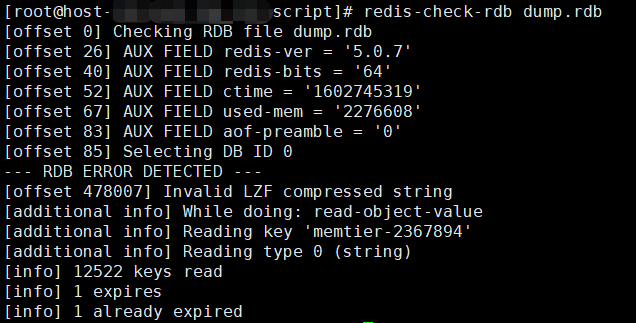 根据上图,说明 RDB 文件中 'memtier-2367894' 这个 key 存在问题。