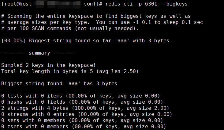 在使用 --bigkeys 时,建议在从实例执行,因为其是通过 scan 完成的,如果在主实例运行,可能会影响业务查询。