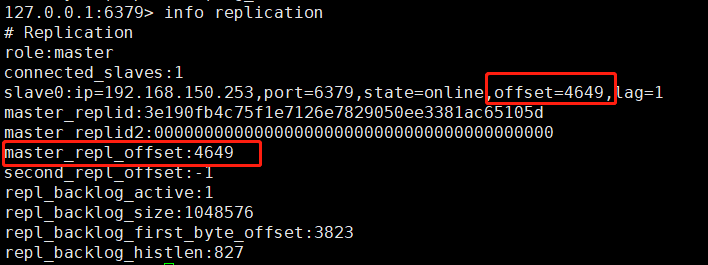 实例 master_repl_offset 和 slave0 字段的 offset 指标一样,因此主从没延迟。