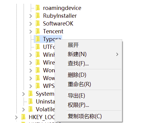 3.找到这个路径:计算机\HKEY_CURRENT_USER\SOFTWARE\Typora