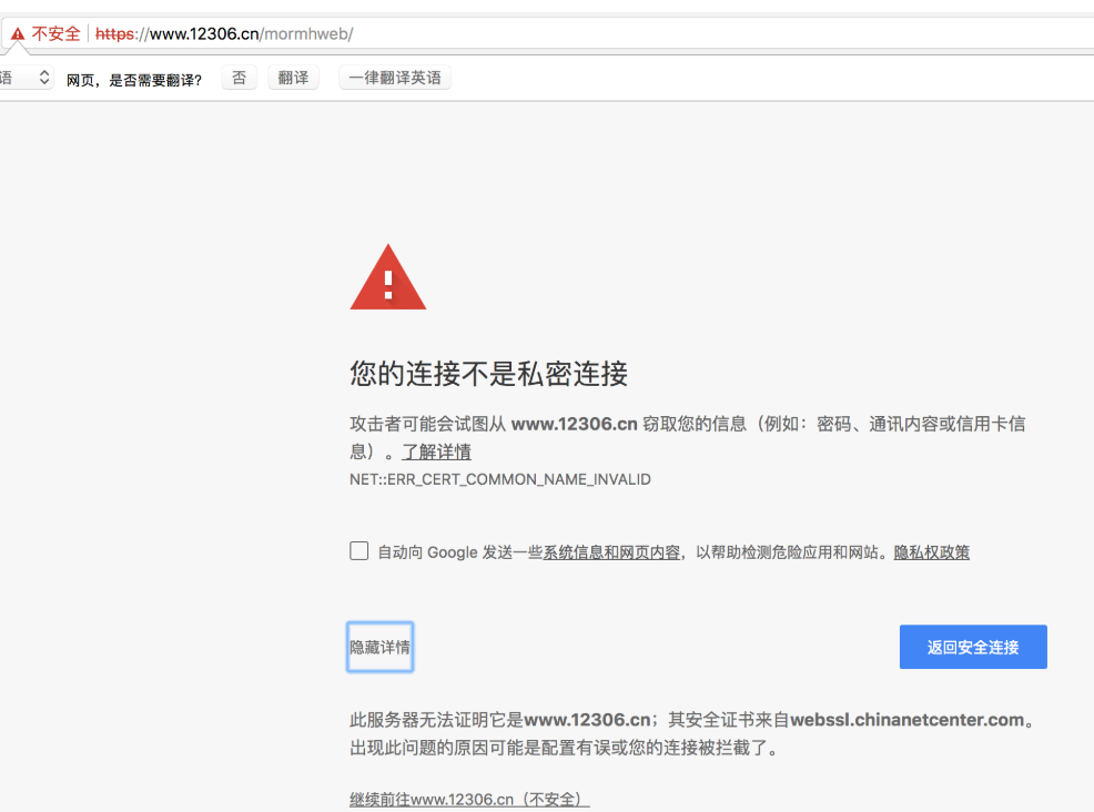 返回证书错误,如下: