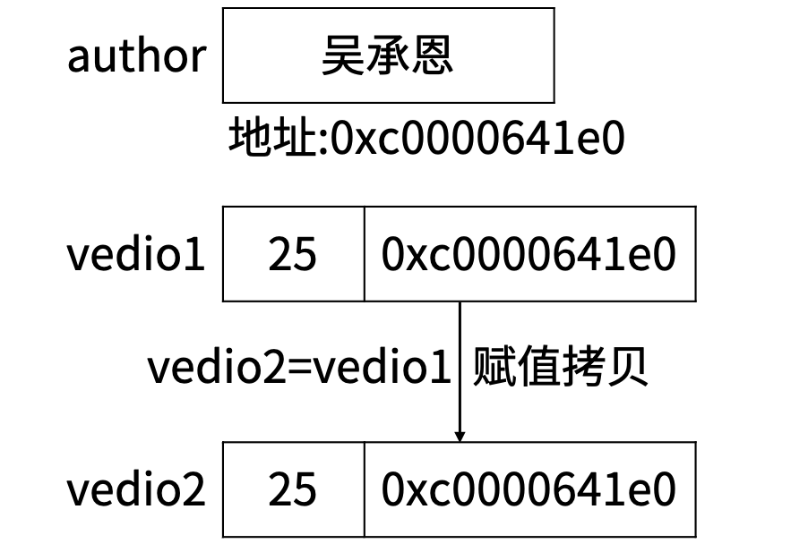 浅拷贝,拷贝的是指针,比如Vedio.Author。
