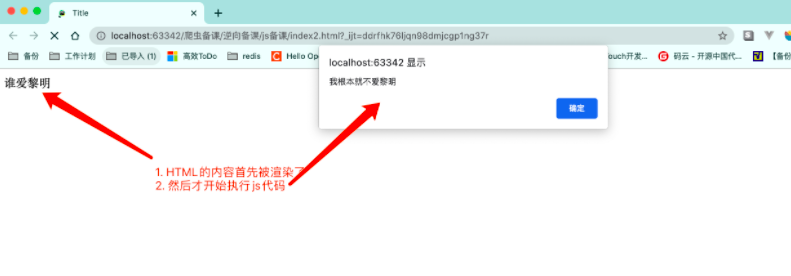 两种方式运行出的效果是一致的. 但是需要各位注意一点, HTML程序在执行的时候是从上到下进行渲染的.