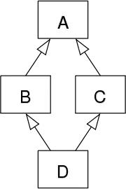 大多数面向对象语言都不支持多继承,而在Python中,一个子类是可以同时继承多个父类的,这固然可以带来一个子类可以对多个不同父类加以重用的好处,但也有可能引发著名的 Diamond problem菱形问题(或称钻石问题,有时候也被称为“死亡钻石”),菱形其实就是对下面这种继承结构的形象比喻