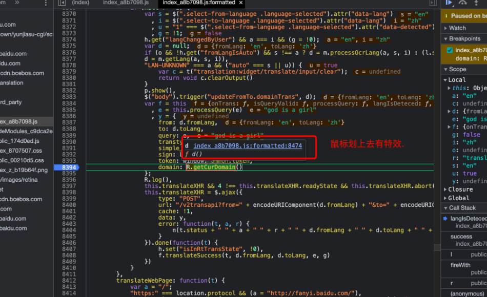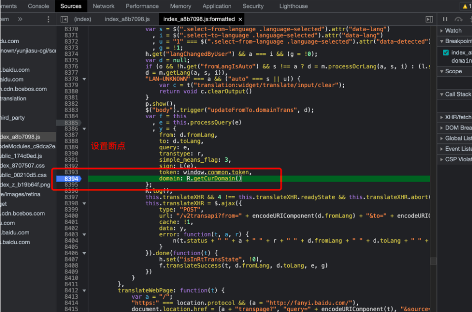 接下来是这个domain的鬼东西, 我们在页面中设置一个断点. 并重新发送请求.