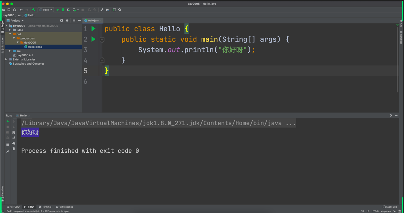 编译完成之后,你会得到一个文件 Hello.class,去运行代码。