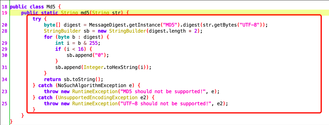 MessageDigest instance = MessageDigest.getInstance("MD5");