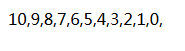 for(var d = 10;d>=0;d--){ document.write(d + ",") }