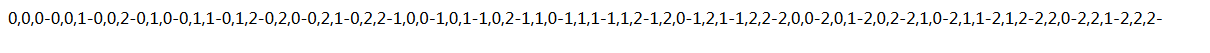 for (var a = 0; a <= 2; a++) { for (var b = 0; b <= 2; b++) { for (var c = 0; c <= 2; c++) { document.write(a + "," + b + "," + c + "-") } } }