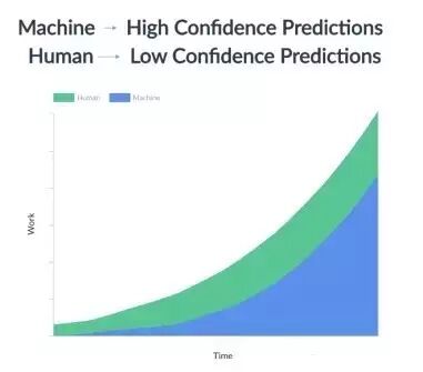 没有人机回圈的机器学习是不会有好的产出的。机器学习模型需要人的参与来去除低的置信度预测。