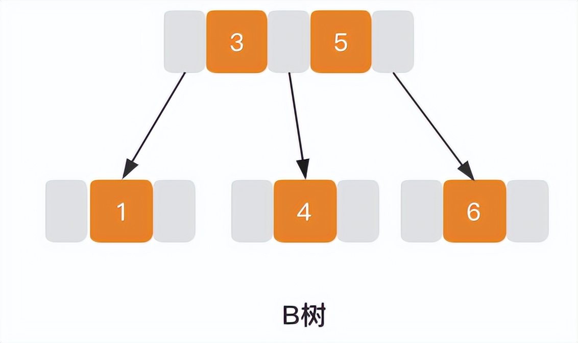 而B树是一种多路平衡查找树,它满足平衡二叉树的规则,但是它可以有多个子树,子树的数量取决于关键字的数量,比如这个图中根节点有两个关键字3和5,那么它能够拥有的子路数量=关键字数+1。