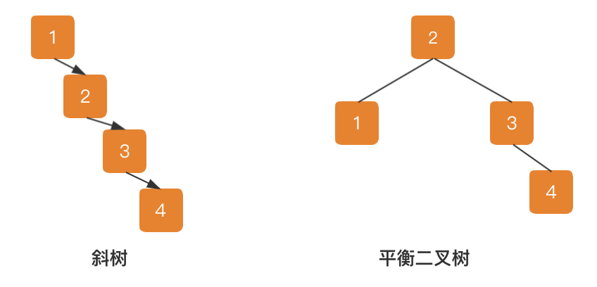 二叉查找树会出现斜树问题,导致时间复杂度增加,因此又引入了一种平衡二叉树,它具有二叉查找树的所有特点,同时增加了一个规则:”它的左右两个子树的高度差的绝对值不超过1“。平衡二叉树会采用左旋、右旋的方式来实现平衡。