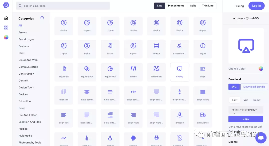 React Unicon 为我们提供了两种不同的样式:SVG 和 EPS,这些矢量格式可以在多数场景下使用。