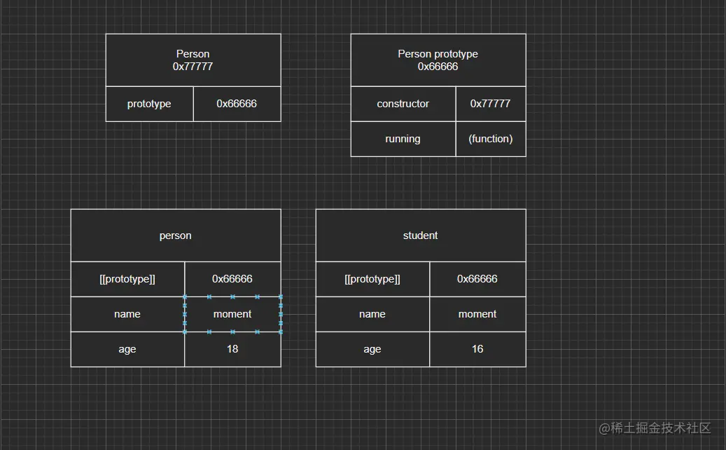 - 执行构造函数内部的代码. 如 person.proto.name='moment'。