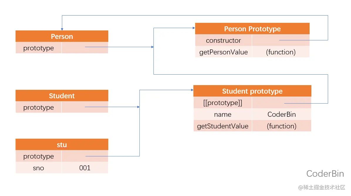 注意2:由于 Student.prototype 的 constructor 属性被重写为指向 Person,所以 stu.constructor 也指向 Person 。