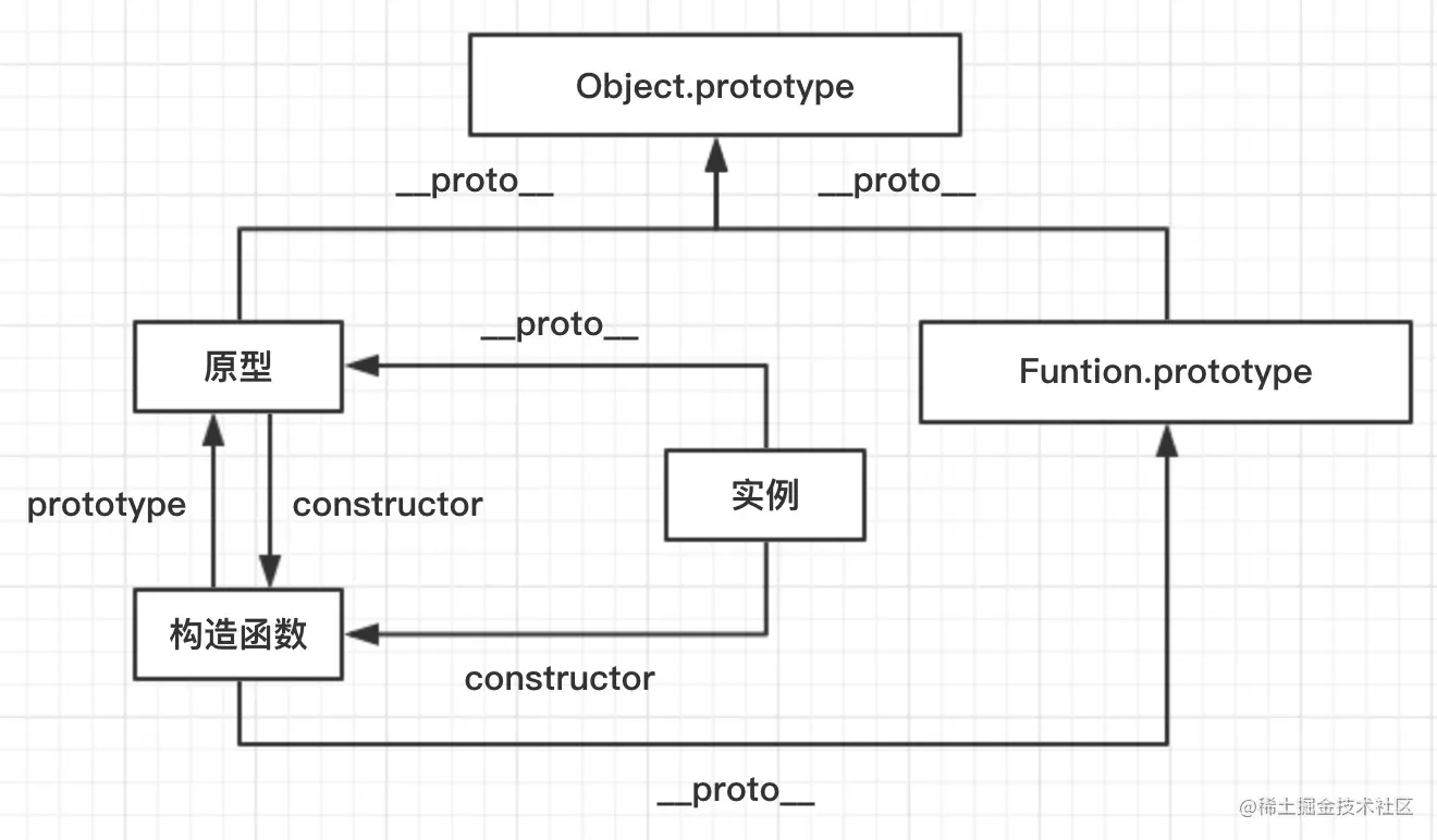 则此时, 实例为instance, 构造函数为Object,我们知道,构造函数拥有一个prototype的属性指向原型,因此原型为: