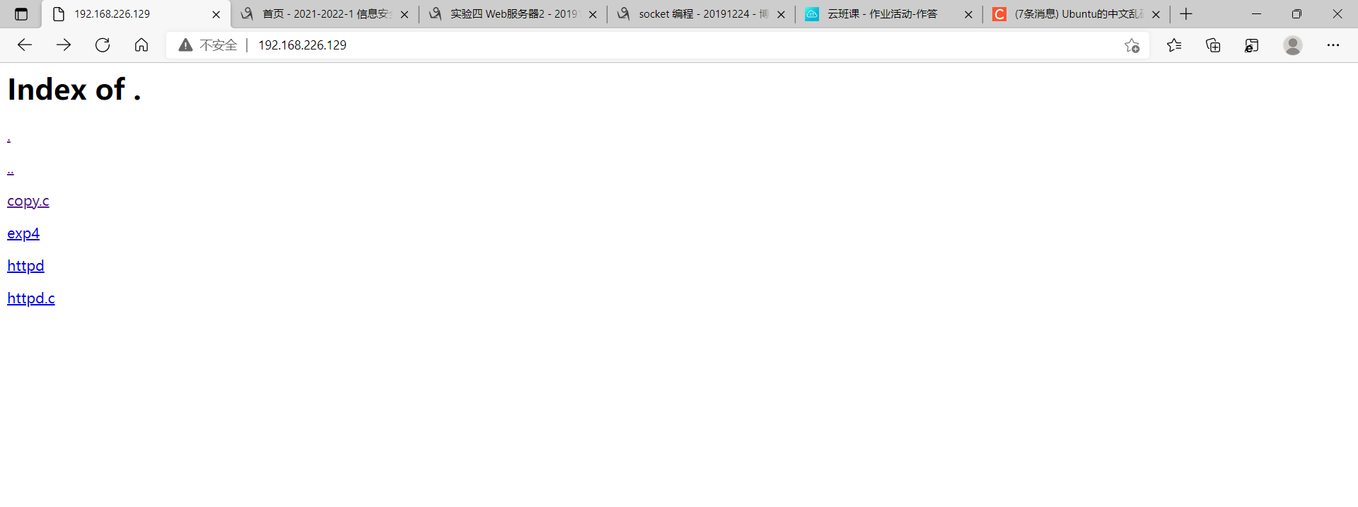 基于华为鲲鹏云服务器CentOS中(或Ubuntu),使用Linux Socket实现:代码使用的是老师提供的代码 1. Web服务器的客户端服务器,提交程序运行截图在对源代码进行宏定义之后