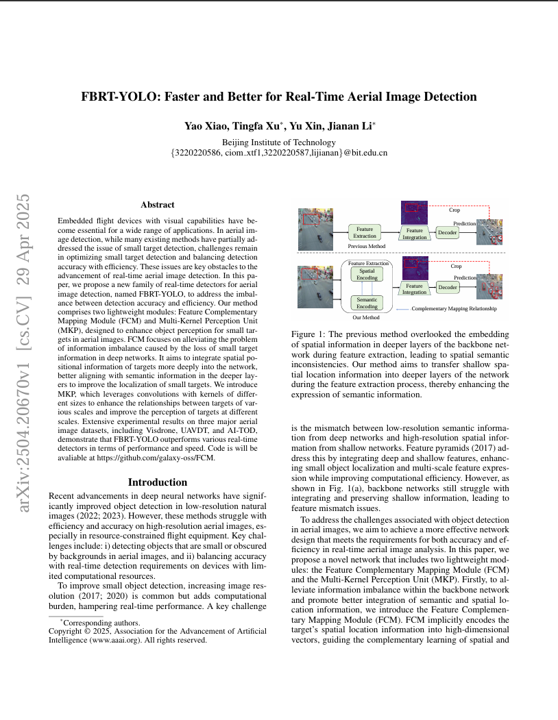 FBRT-YOLO: Faster and Better for Real-Time Aerial Image Detection—— 更快更好:面向实时航拍图像的目标检测论文链接:https://arxiv.org/pdf/2504.20670