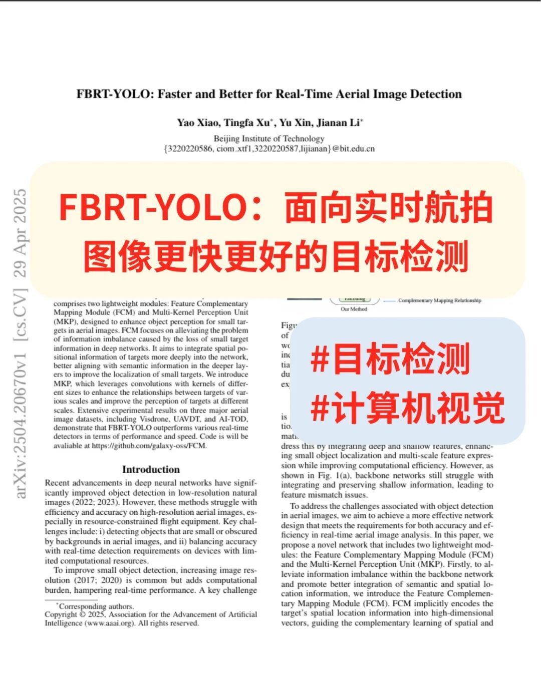 【论文复现上新】AAAI2025!北理工团队提出FBRT-YOLO:面向实时航拍图像更快更好的目标检测 |计算机视觉|目标检测