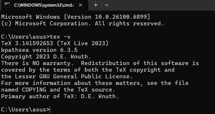 Win+r,输入cmd即可打开命令行输入tex -v,若出现版本号即安装成功。(演示时已安装,仅显示了之前安装的结果)