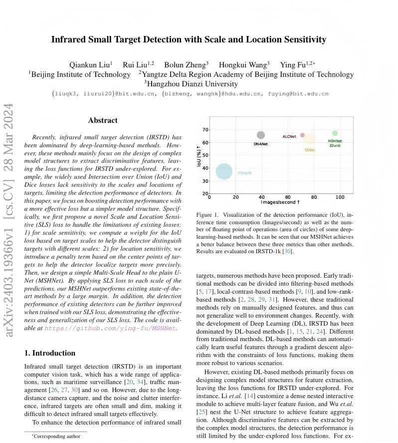 论文名称:Infrared Small Target Detection with Scale and Location Sensitivity