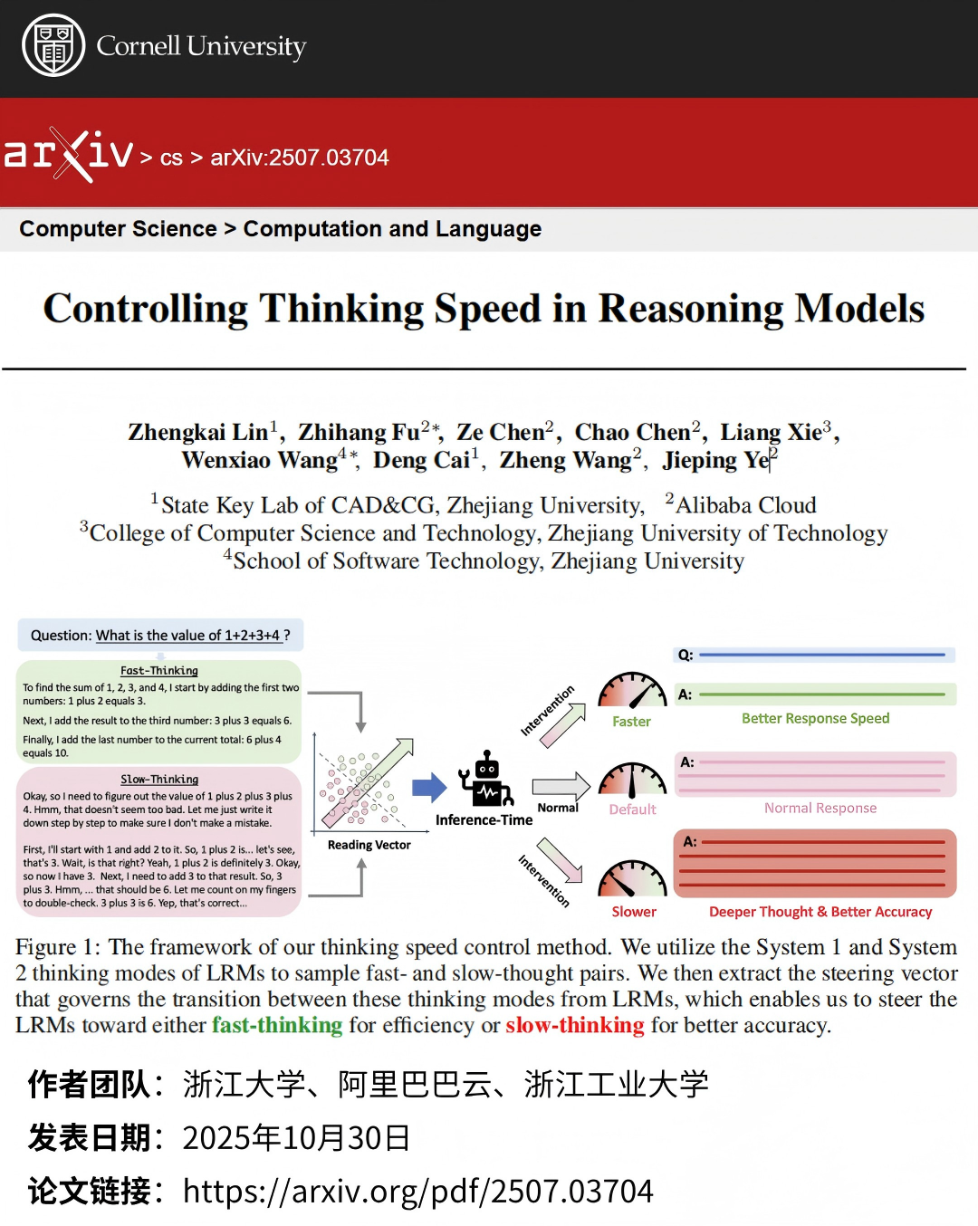 论文标题:Controlling Thinking Speed in Reasoning Models
