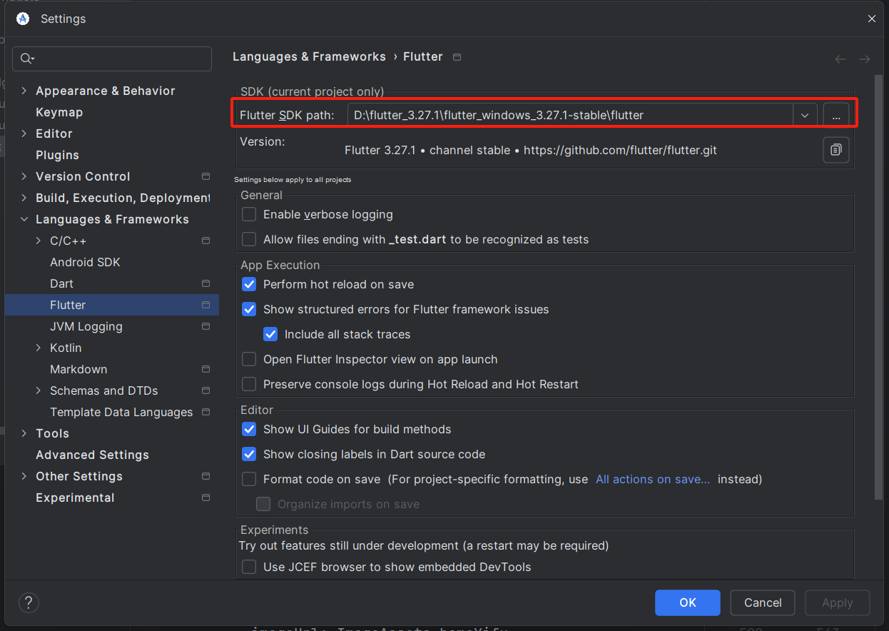 这个修改路径就能让该项目变成你想要的flutter sdk版本了