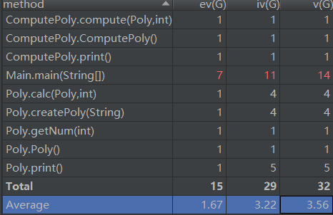java的一些基本语法和面向对象的思想有了初步的了解和认识,但是因为已经很长时间没有敲过java的代码,因此难免会显得生疏,虽然代码也使用了多个类和方法,但是各个方法之间的分工不明确,此外main方法承担了大量的工作,因此main方法的复杂度较高也就是必然的了- - - 在处理输入的多项式的时候我使用了正则表达式,由于之前没有学习过正则表达式,因此在正式开始工作之前先耗费了一定时间学习正则表达式的使用。另外,由于我每次都是提取出最前面一个多项式进行处理, 在很大程度上避免了爆栈情况的发生。