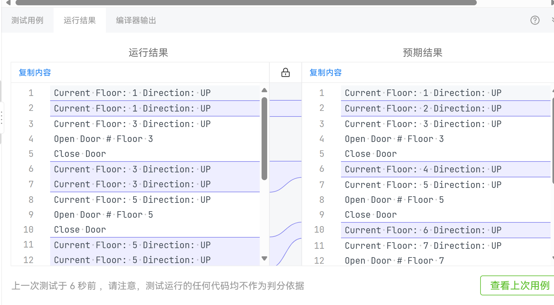 可知未输出需停靠电梯的3层楼,且后面电梯运行也未准确输出。