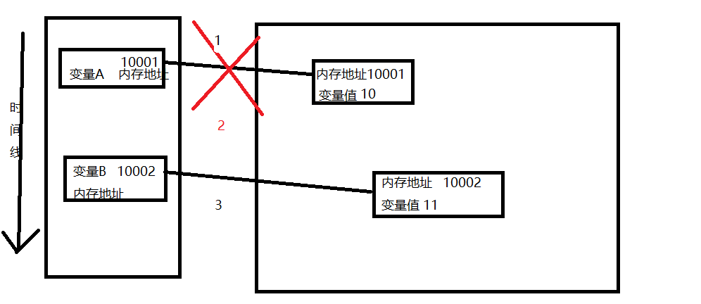 第二步:将值10的内存地址存放给变量A