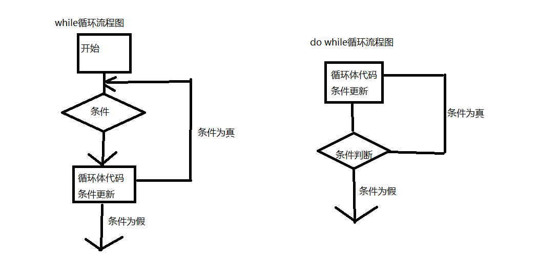 do while循环与while循环不同的是do while是先执行循环体代码再判断条件,因此do while循环至少执行一次