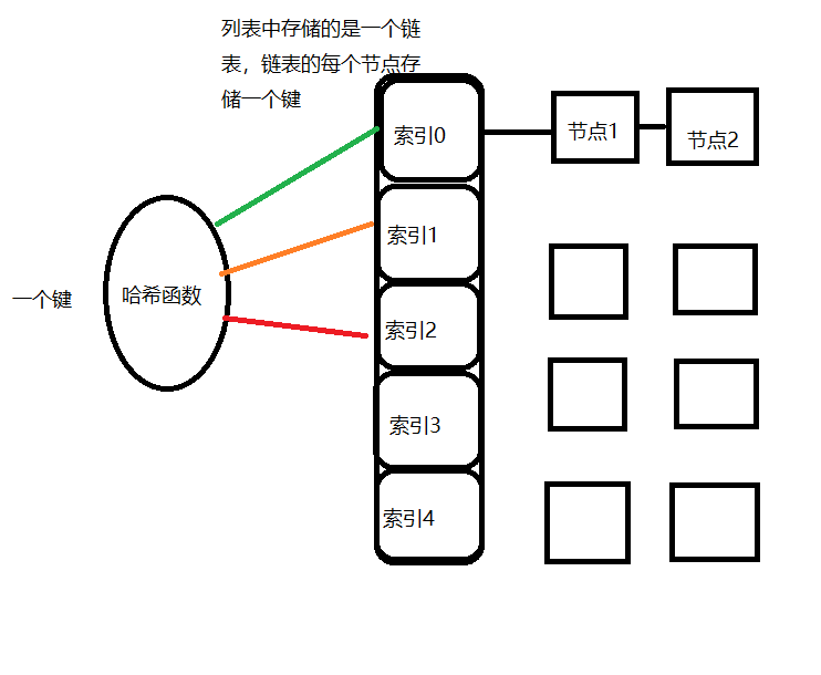 二度哈希:如果依次哈希得到的索引已经有键,那么可以使用第二个哈希函数对应一个新的索引地址。如果仍被占用,就再哈希